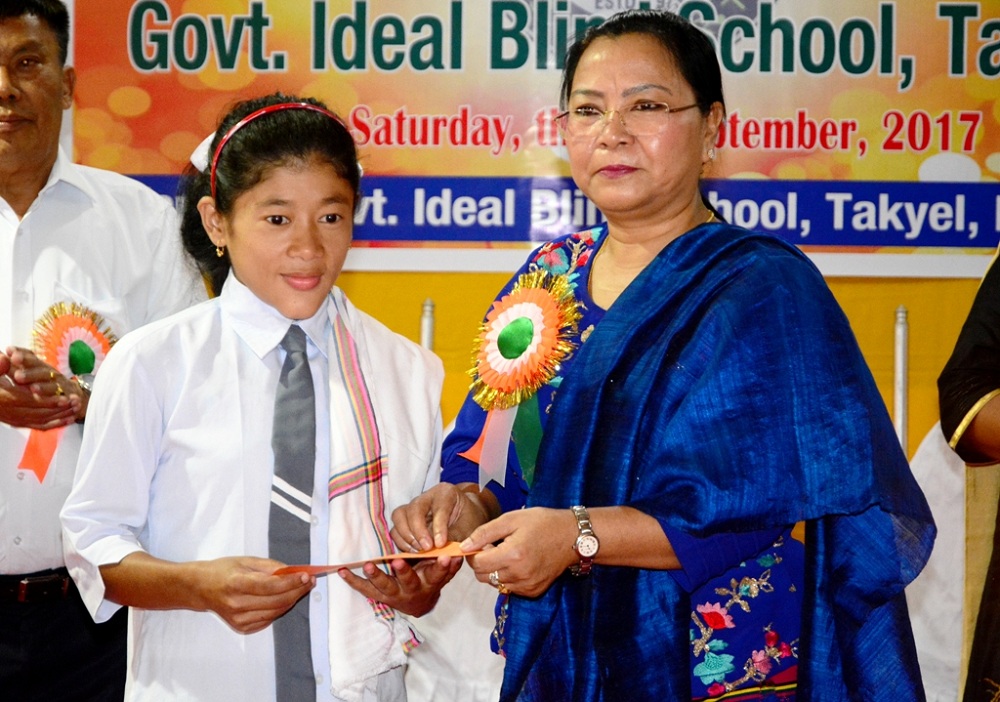 Imphal, September 9, 2017 (DIPR): Social Welfare and Cooperation Minister Smt Nemcha Kipgen today expressed that under ‘Accessible India Campaign’, the State Government, under the leadership of Chief Minister Shri N. Biren Singh, is in the process of making 30(thirty) Government office buildings to be easily accessible for the Persons with Disabilities. The Minister stated this during her speech as Chief Guest at the 44th Foundation Day Celebration of Govt. Ideal Blind School, Takyel.