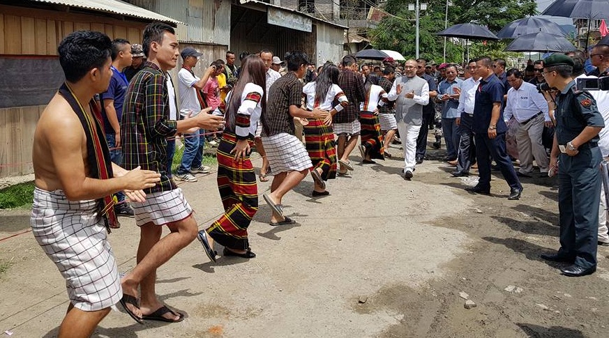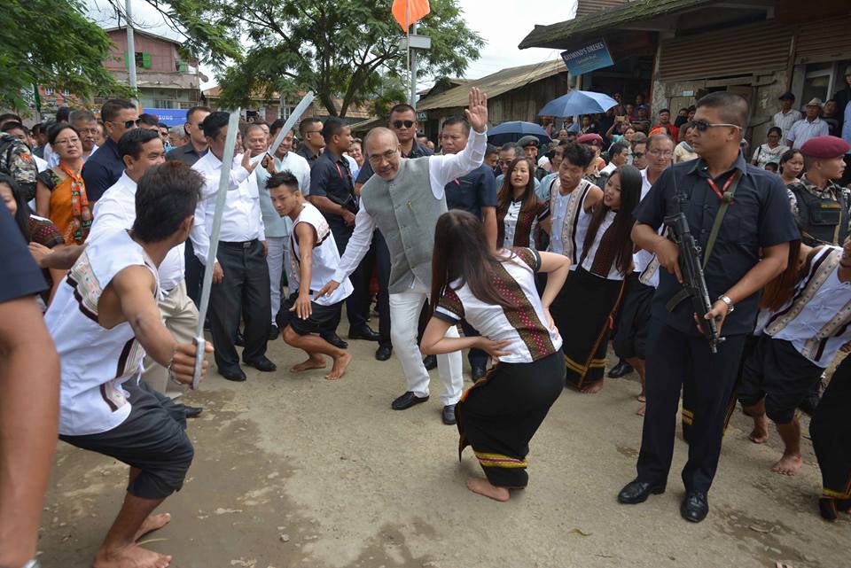 Biren Singh and his council of ministers were recieved amid dance and music by various communities in the ceremony organised by autonomous district council of Churachandpur.