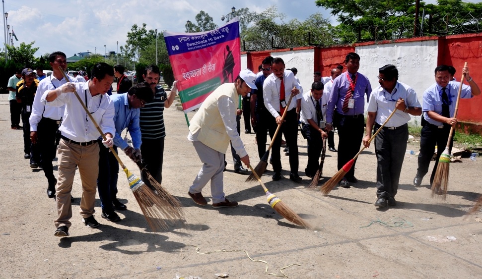 Airport Director, Airports Authority of India Imphal International Airport, Shri S. K. Panigrahi, Deputy Commandant, CISF ASG, Shri P.D. Gaisung, Imphal, CISF personnel officials of Airporst Authority India, officials and staffs of Air India, Indigo, Jet Airways, and Air Asia also participated in the cleanliness drive.