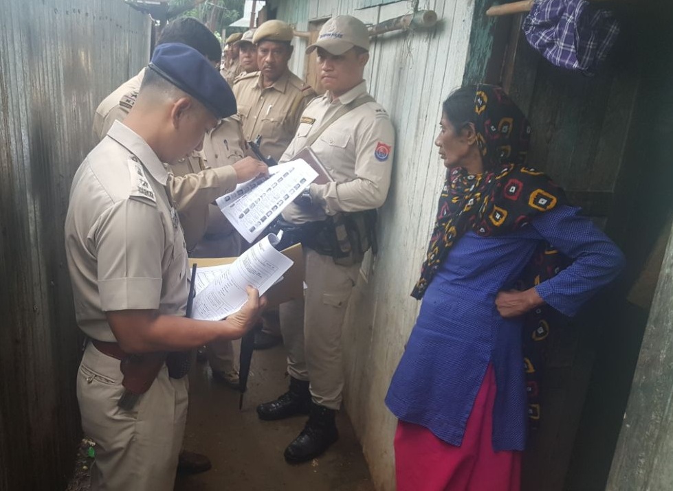 Imphal, September 20: A team of police under the supervision of superintendent of police Tengnoupal district Dr. S Ibomcha, along with SDPO, OC Moreh have conducted house to house verification including the rented houses from 6 am to 8 am at Muslim Basti, Moreh Ward No. 5 to check the presence of illegal immigrants.