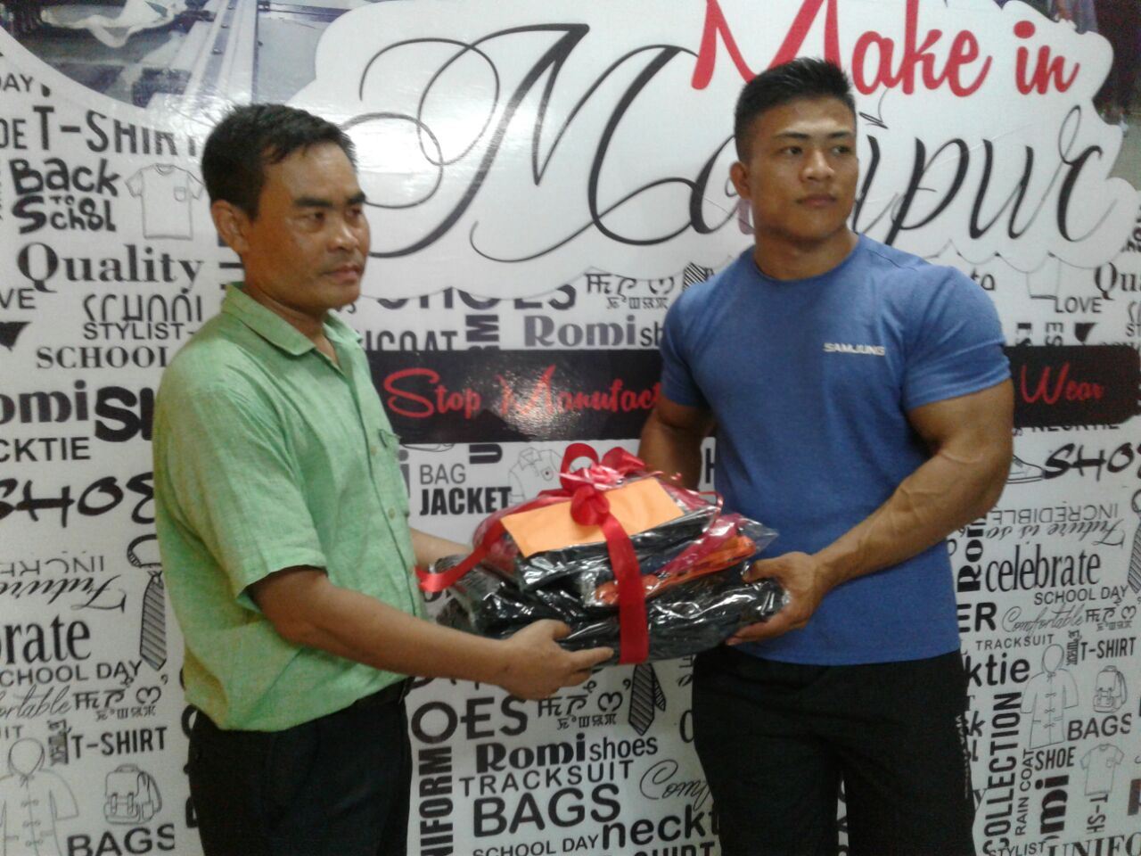 In the wish giving event Dhanchandra presented him different kinds of sports suits and carry bags produced by Romi Industries while ecourage the emerging muscle man who has high hope in winning the contest at Ulaanbaatar. Dhanachandra also gave him finacial support fo Rs. 5, 000 to Rishikanta.