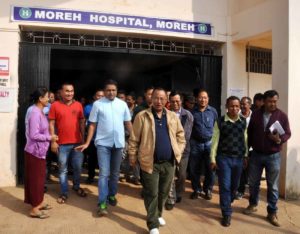 Today, Minister Jayantakumar paid an inspection visit at Moreh Hospital and PHC, Moreh. He interacted with the staff of District Hospital, Moreh and assured that the basic requirement of Moreh Hospital and PHC, Moreh will be provided as intimated and proposed by the Staff and locals.