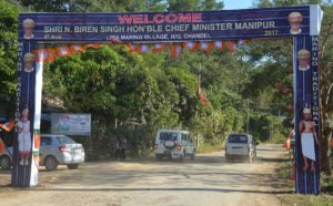 Giant gates are being erected to greet the Chief Minister at various points like Thamlakhuren Village, Ziontlang Village, Liwa Maring Village etc. These gates are especially arranged for the occasion imprinted with ‘Welcome Shri Biren Singh, Hon’ble Chief Minister of Manipur’. All the speed breakers/road humps are being removed along the Pallel-Chandel District HQ road.