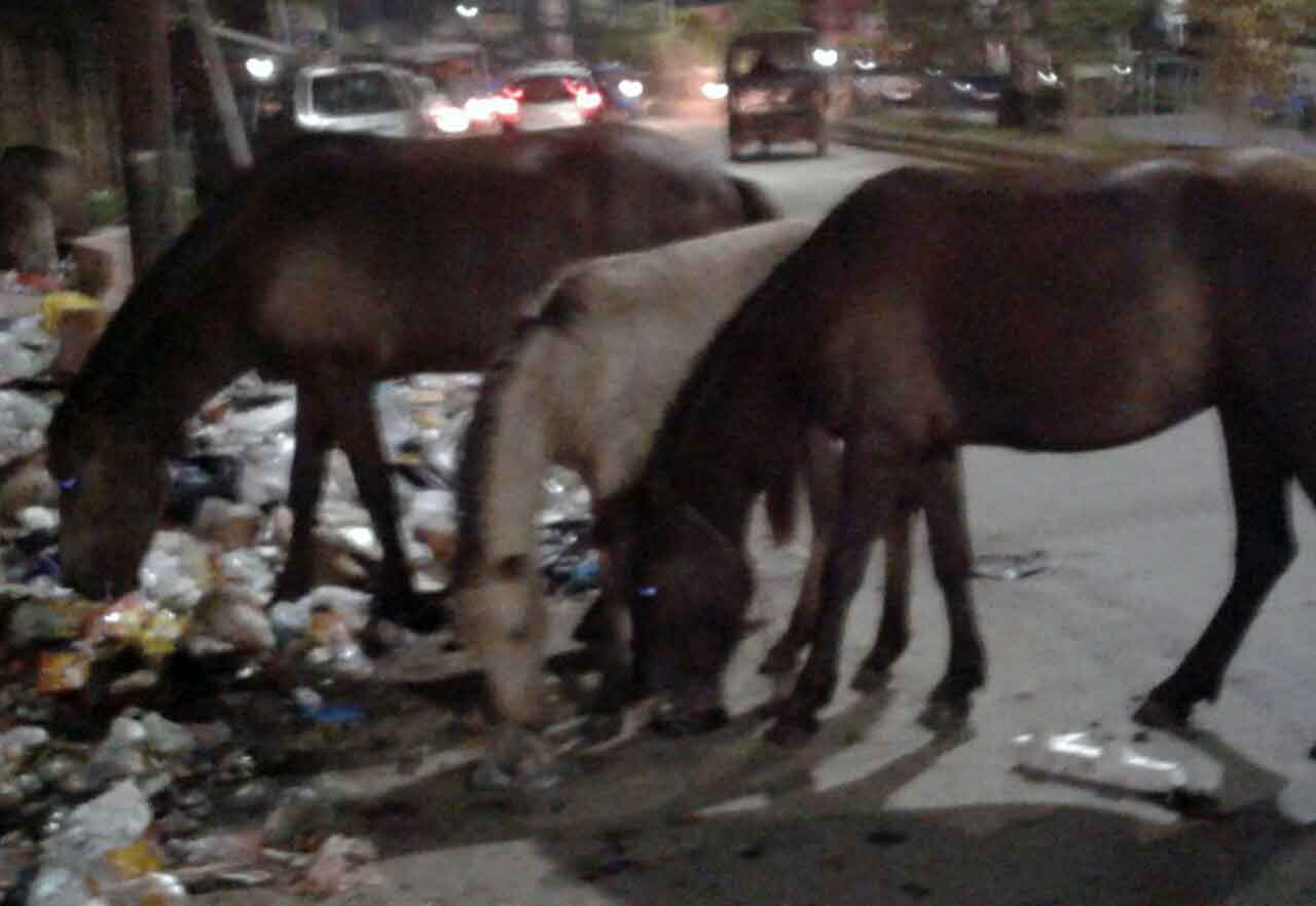 Imphal, November 7: Original polo animal Manipur ponies are often seen along the streets and garbage sites as their happy homes and people had been complaining for a rigid plan to save the pony from extinction.