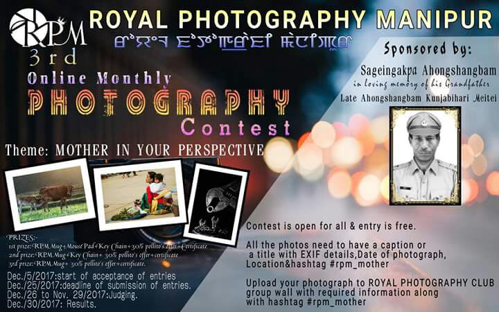 Imphal, November 13, 2017: Royal Photography Manipur has opened its third edition of Monthly Online Photography contest on December 5, 2017 the theme “Mother is Your Perspective” by beginning to receive photos from contestants.