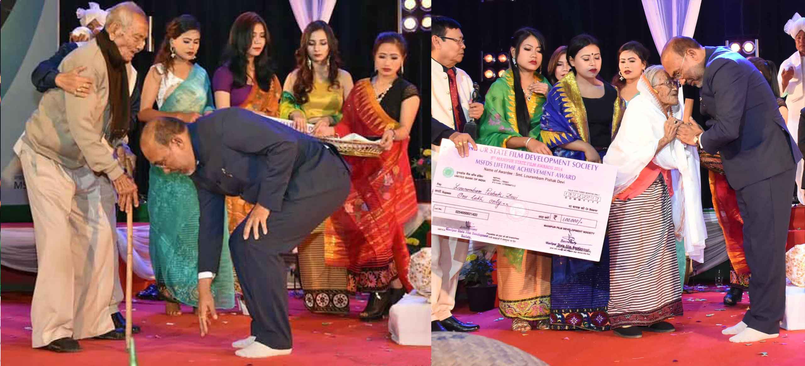On the occasion, Chief Minister conferred awards to veteran artists Shri Oinam Biramangol Singh and Smt. Lourembam(O) Pishak were conferred Lifetime Achievement Awards for their contribution towards Manipuri Cinema. Various film awards in the different categories were also given to various artists during the Award Ceremony.