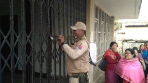 Imphal, January 31, 2018: Employees recruited in in 2016 at Public Works Department (PWD) today locked the main entrance of the department building and staged a sit-in demanding to lift “Keep in Abeyance” order imposed upon the employees.