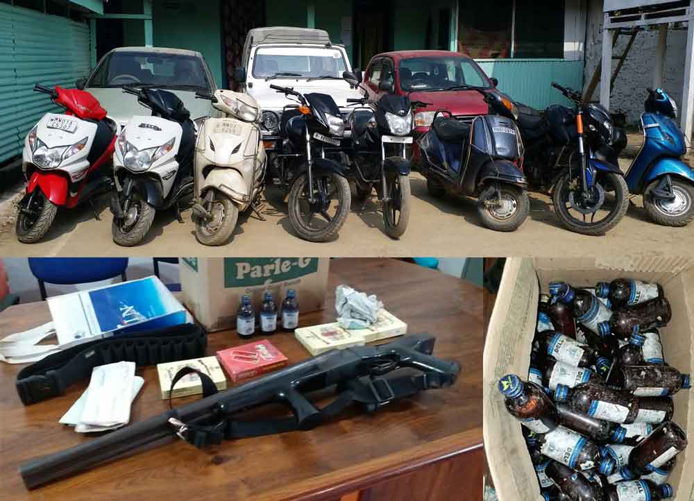 Imphal, February 3, 2018: A combined team of Thoubal police, Kakching police and NAB, SDC of Lilong, food safety officer of Thoubal and Kakching, members of All Lilong Anti Drug Association today seized three four wheelers, eight two wheelers, one double barren gun and two gm of heroine no. 4 in a search operation at Lilong Leihaokhong, Lilong Yangbi and Lilong Haoreibi Awang Leikai.