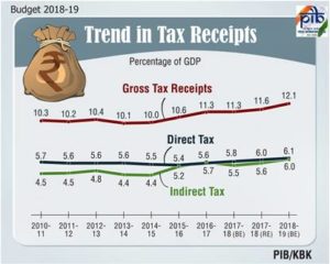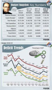 - Fiscal Deficit pegged at 3.5 %, projected at 3.3 % for 2018-19.