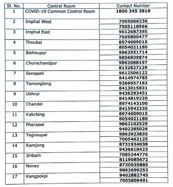Pothashang News Service: Imphal, March 25, 2020: In view of the current Covid-19 pandemic, a Covid-19 common control room has been functioning from the Darshan Hall, chief minister’s secretariat, Babupara, Imphal since March 23.