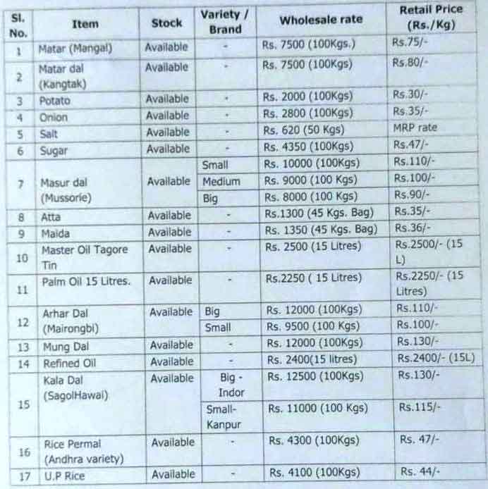 The retail rates of the items in respect of Churachandpur and Pherzwal districts will be Re 1 above the rates indicated, it added.
