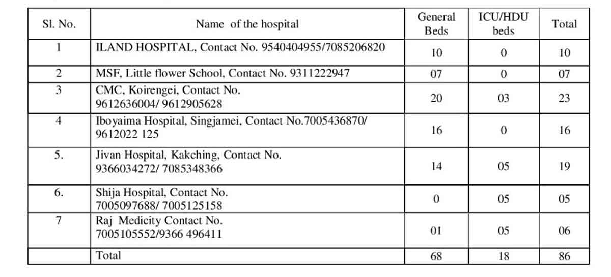 For information about community home isolation centres (CHIC) on can contact Dr L. Somorendro, deputy director of health and CHIC in-charge ar 9402723243.