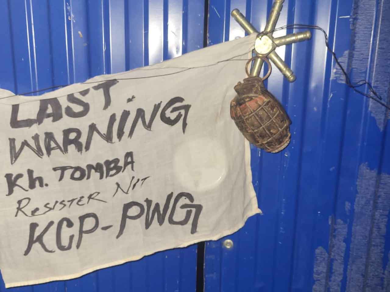 A warning note found alongside the explosive read: “Last warning Kh. Tomba, Registrar NIT, KCP-PWG.”