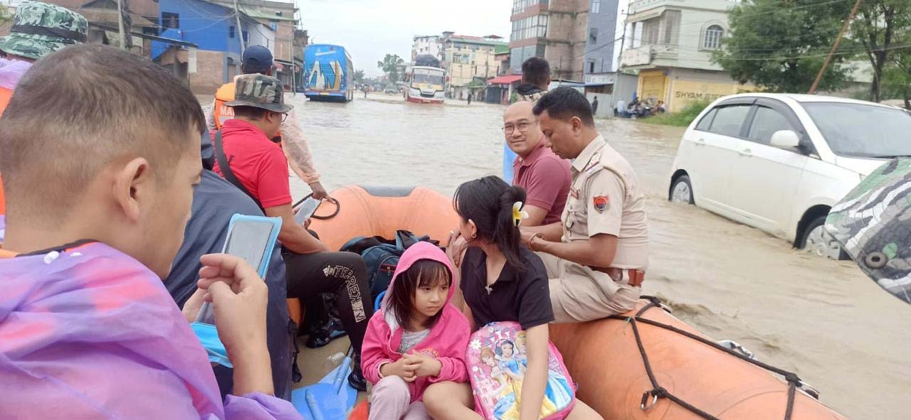 Imphal: Incessant rainfall over the past five days has led to a severe rise in flood levels across the Imphal valley, affecting at least 3,275 localities, damaging 883 houses, and killing 64 domestic animals, officials confirmed on Saturday.