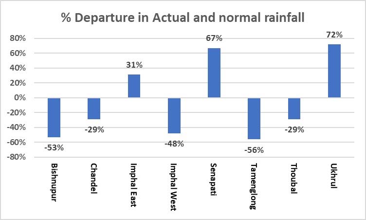“The IMD reported accumulated rainfall of 49 mm in Kangpokpi, 91 mm in Noney, and 82.5 mm in Imphal West since 3 am Sunday. The water levels of the Iril and Nambul rivers have also crossed the danger mark,” officials said.