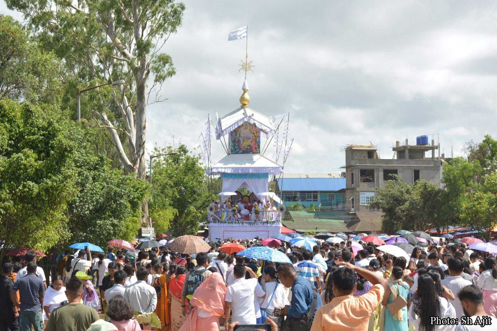 Imphal: Thousands of devotees turned up on Friday to participate the Shri Shri Govindaji Kang procession (Rath Yatra) in conflict-hit Manipur after a gap of two years.