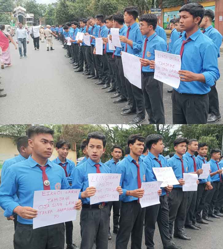 Students of various schools including Ibotonsana Higher Secondary School, Johnstone Higher Secondary School, TG Higher Secondary School, and CC Higher Secondary School in Imphal held protest demonstrations within their school campuses.