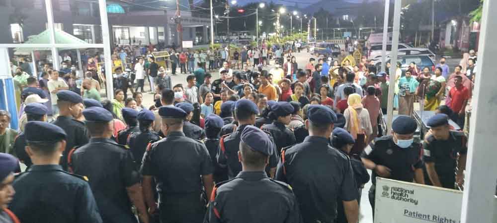 Irate relatives and supporters staged a protest at the hospital premises, refusing to accept the body until their demand was met. Tension escalated when the hospital’s private security tried to intervene. The situation was brought under control after Manipur Police rushed to the scene.