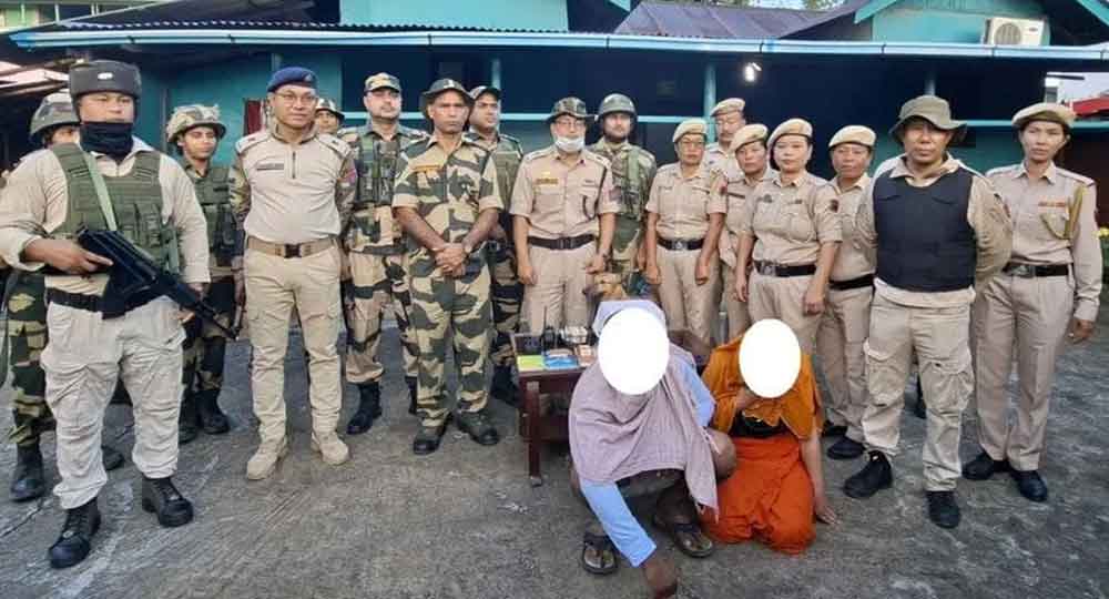 Imphal: Security forces arrested two drug smugglers at Lilong Hangamthabi under Lilong-PS, Thoubal district on Monday with 2.357 kg of Methamphetamine WY tablets and a sum of Rs 2,04,800.