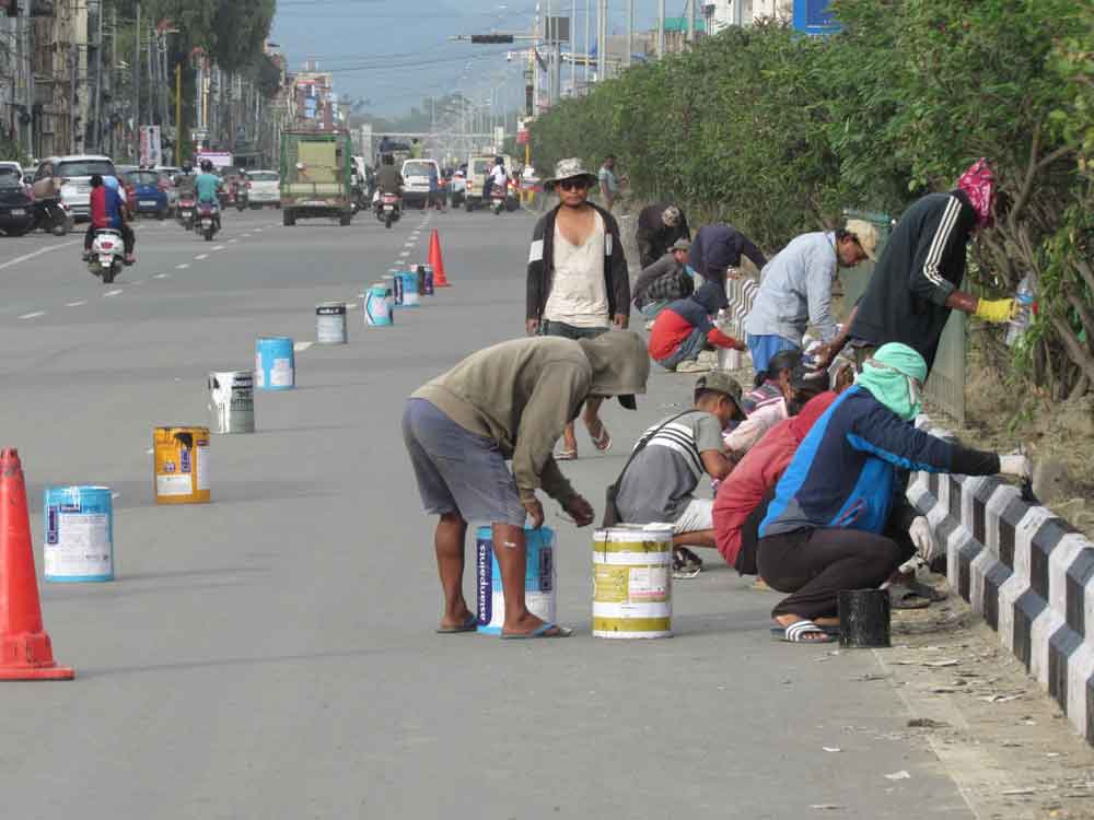 Following the August 30 meeting, renovation, installation of temporary roadside fencing, and painting work are underway along the Tiddim Road stretch, from Bir Tikendrajit Imphal International Airport to Kangla.