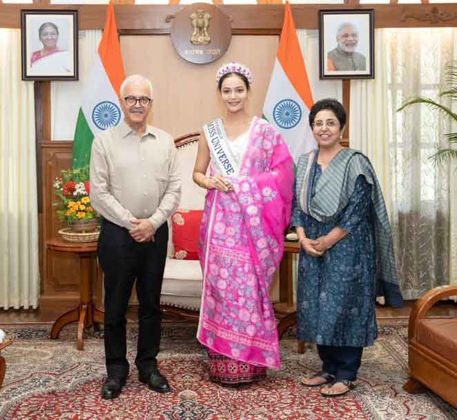Imphal: Sarangthem Nirupama, who recently secured the title of 4th Runner-up at Miss Universe India 2025, called on the governor of Manipur, Ajay Kumar Bhalla and the first lady, Jyoti Bhalla, at Raj Bhavan, here on Friday morning.