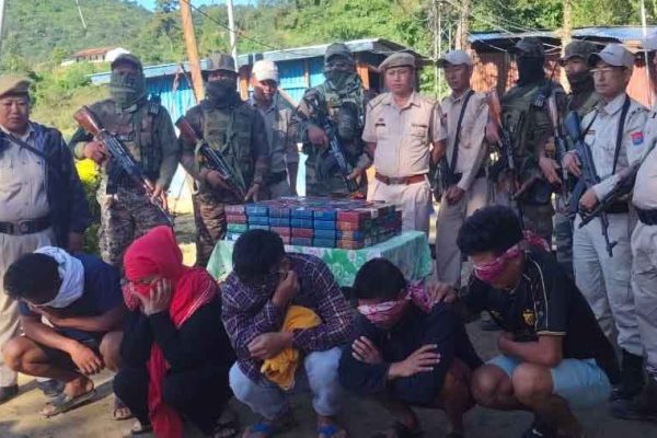 Imphal: A combined team of Tadubi police station, Senapati and 16 AR arrested five individuals including a lady along with 187 soap cases of Brown Sugar on Wednesday afternoon at the Tadubi police checkpost along the NH-2. The contraband items were carried hidden in the rooftop of two vehicles (Maruti Gypsy). The drugs were seized…