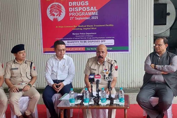 Imphal: Manipur Police disposed narcotics recovered in six months — 6.1 kg of Heroin powder, 86.87 kg of brown sugar, 22.18 kg of WY tablets, 0.047 of SP capsules, 36.079 kg of pseudoephedrine and 181.868 kg of Ganja at Shija Common Biological Waste Treatment Facility, here on Saturday. State police take the drug issue very…