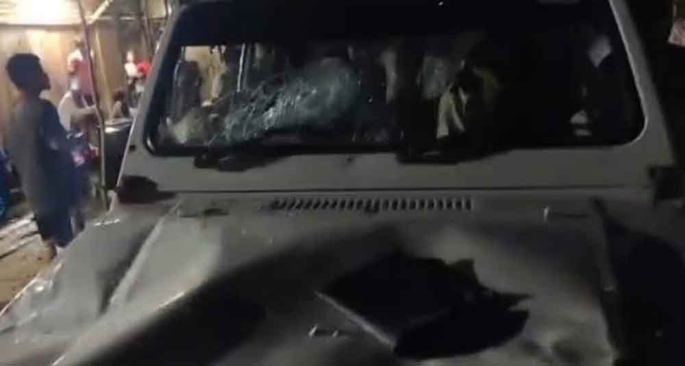 According to police, the incident occurred at around 9.30 pm. Windshields of at least two vehicles including vehicle of the additional superintendent of police, Chandel district were damaged.